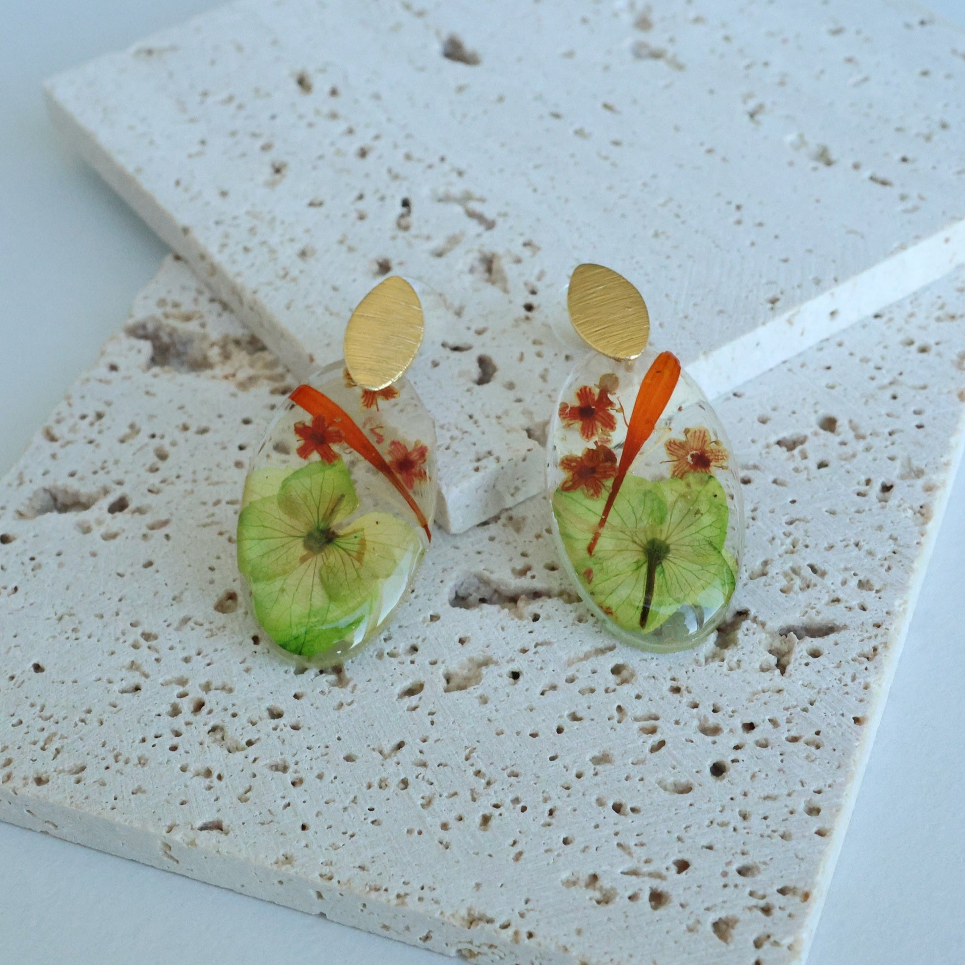 Pressed Orange/Green Flower Earring